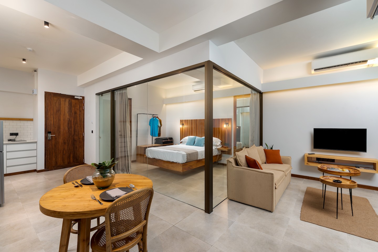 The 2BR Loft Apartment is the most generous space in the hotel. Two bedrooms, a living area, a fully equipped kitchen, and the kind of view that makes you push the check-out back by a day. Designed for families, groups of friends, or anyone who simply wants more room to breathe.